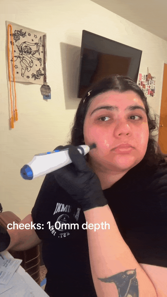 Step 2: CHOOSE YOUR SETTINGS- Pick the right needle depth (0.25-0.5mm for beginners) and speed level (1-3 for first-timers).